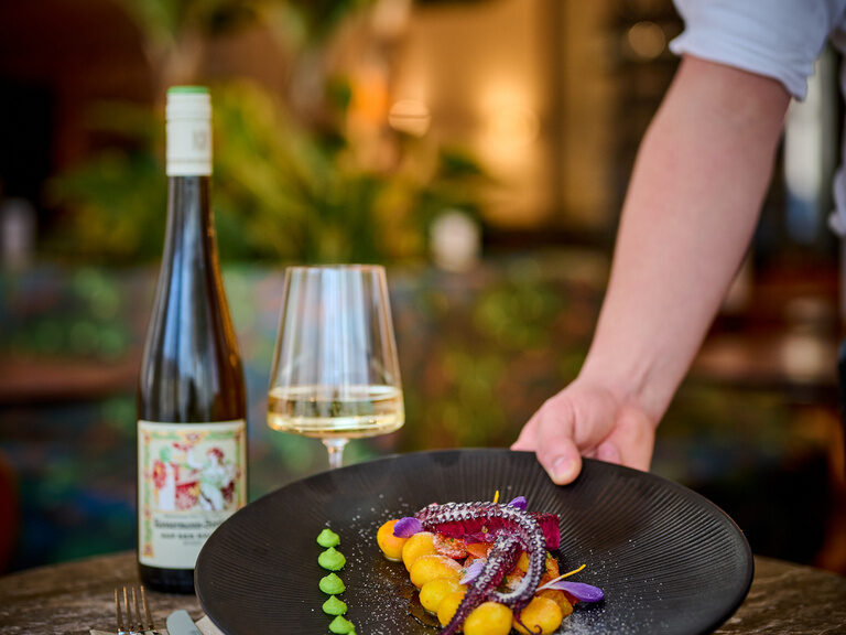 Das erst jüngst neu gestaltete Restaurant präsentiert sich lichtdurchflutet in schickem Art-Déco-Ambiente. Neben dem stylischen Interieur mit großer, zentraler Bar hat hier auch die Natur Einzug gehalten.