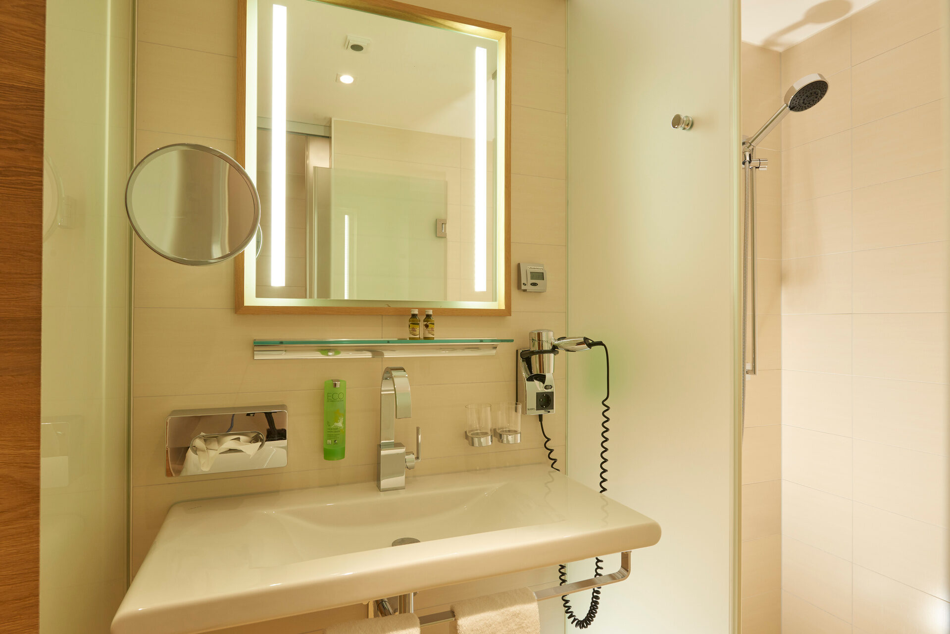 Die 47 Businesszimmer, 12 Komfortzimmer und 5 Suiten strahlen durch das edle Holz mit roten Elementen, dem hellen Eichenparkett und den dezente Glas-Illustrationen eine trendige und natürliche Wohlfühlatmosphäre aus.